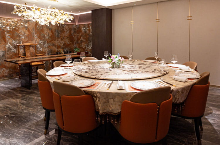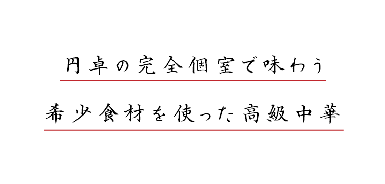 店内には全5室の円卓完全個室をご用意しております。静かなプライベート空間は、美食をゆったりと味わうひとときにふさわしい上質なお部屋です。2名様から14名様までご案内可能で、ご接待やご会食など、さまざまなシーンにご利用いただけます。