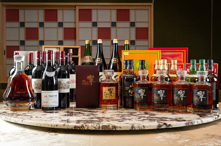 お料理とともに愉しむ一杯として、「十四代」や「新政」などの日本酒、「山崎」や「響」などのジャパニーズウイスキーをはじめ、さまざまなお酒を取り揃えております。選び抜いた銘酒を味わえる特別感も、当店ならではの魅力のひとつです。