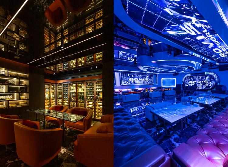 「本源」と同じビルには、姉妹店である高級感漂うラグジュアリーなバー「ZEUS」もございます。ゆったりとお酒をお楽しみいただけるのはもちろん、店内奥には壁や天井にまでモニターを配置した、最大42名様まで対応可能なVIPルームもご用意。「本源」で大人数のご宴会をご希望の場合は、こちらのお部屋でお食事をお楽しみいただくことも可能です。