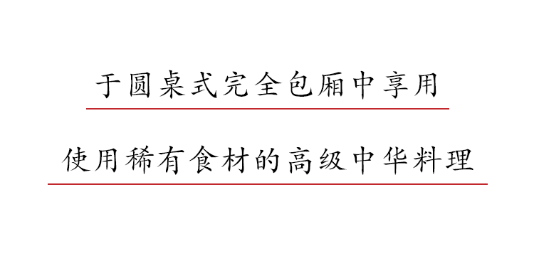 包括在可供品尝的店家极为有限的中国福建省传统顶级名汤「佛跳墙」,以及「熊掌」、「燕窝」,还有本店引以为傲的鱼翅料理等,皆严选珍稀高级食材精心制作而成。每一道料理皆极尽奢华,带来令人愉悦且华丽的味觉飨宴,邀您细细品味。