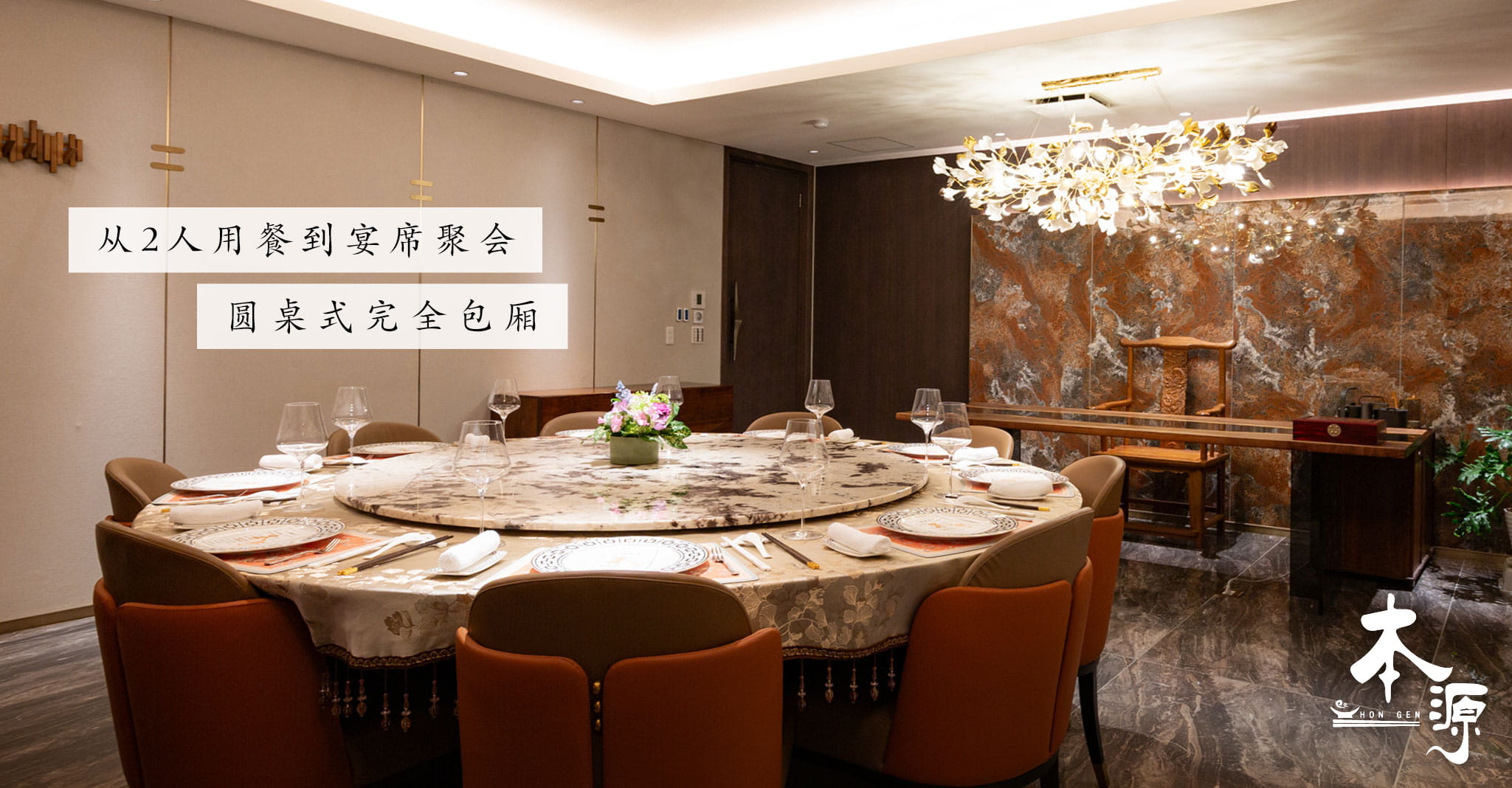 店内设有5间圆桌式完全包厢。宁静的私人空间,适合悠闲享受美食,是一处兼具品味与质感的用餐环境。可接待2至14位宾客,无论是商务接待或各类宴席聚会,皆能灵活运用。